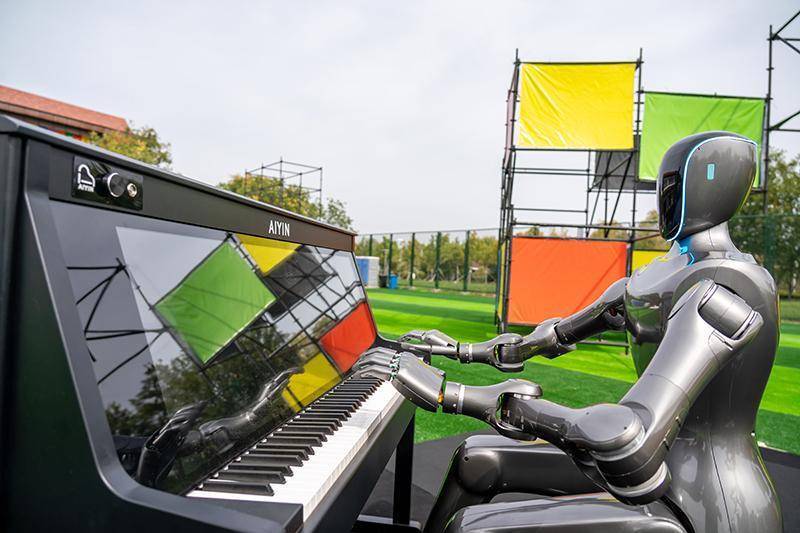 此外,舞台演艺、儿童公益绘画、陶艺体验、露营躺平、丰收节搬南瓜大赛、潮流运动等区域也吸引了市民游客的目光。舞台区在多个时段上演机器人音乐会,钢琴机器人弹奏经典旋律,架子鼓机器人精准掌控节奏,贝斯机器人流畅拨弦表演......机器人乐队还带领游客载歌载舞。休闲体育区提供飞盘、沙包、桌游等游戏道具,游客结队坐在草坪上,上演剧情游戏。露营区配备有天幕帐篷、懒人沙发,为游客打造一处休憩场所。